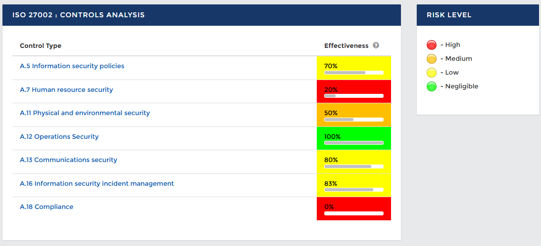 ISO 27001:2022 saw the introduction of attributes as a way to sort or present controls, the five suggested attributes have been mapped in Abriska and graph analysis is now provided where the default ISO 27001 control question set is utilised. Organisations can further analyse a suppliers risk detail not only but looked at each control risk but understanding risk by Cybersecurity Concepts, Information Security Principles, Control Types, Security Domains and Operational Capabilities. The mapped controls to these Attributes can be found in ISO 27002:2022.