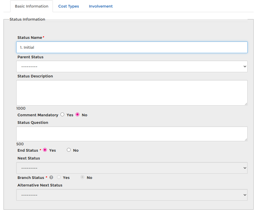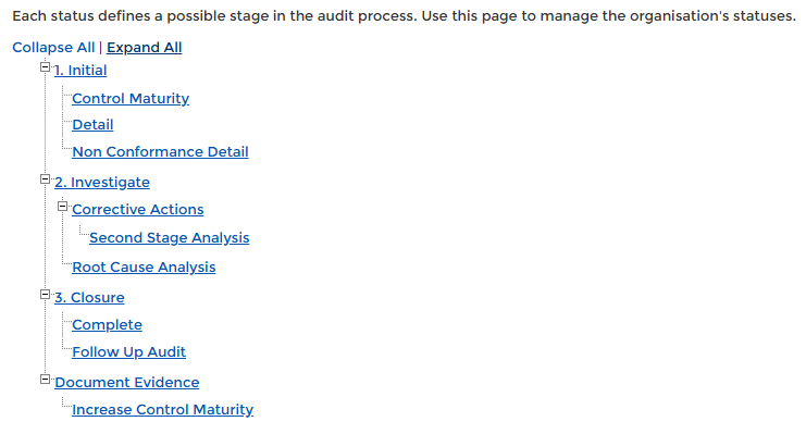 Statuses – Needs to be set up ahead of Audit Types and Finding Types