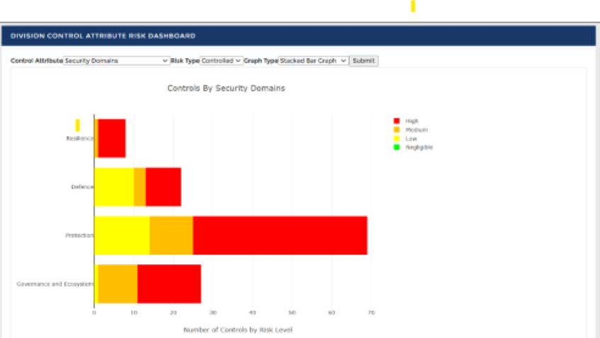The 'Select Division' filter shows the maximum risk associated with each of the divisions. If multiple risk assesments are completed in different divisions, (which we only recommend if control maturities are assessed differently per division) then it can be worth filtering per division.